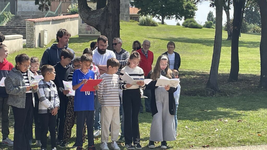 Quelques élèves des deux écoles de la commune se sont unis pour lire le poème « Liberté » de Paul Eluard lors de la commémoration du 8 mai.