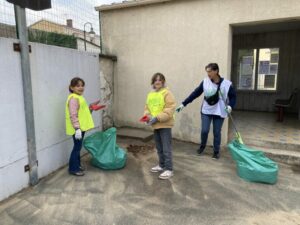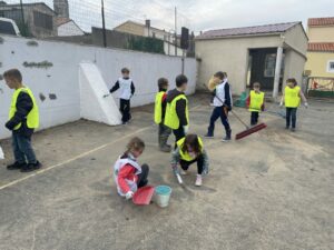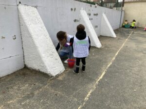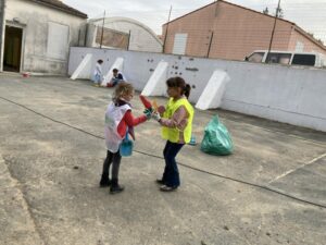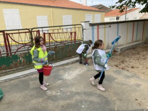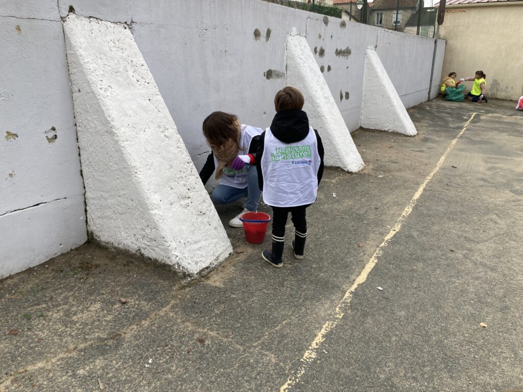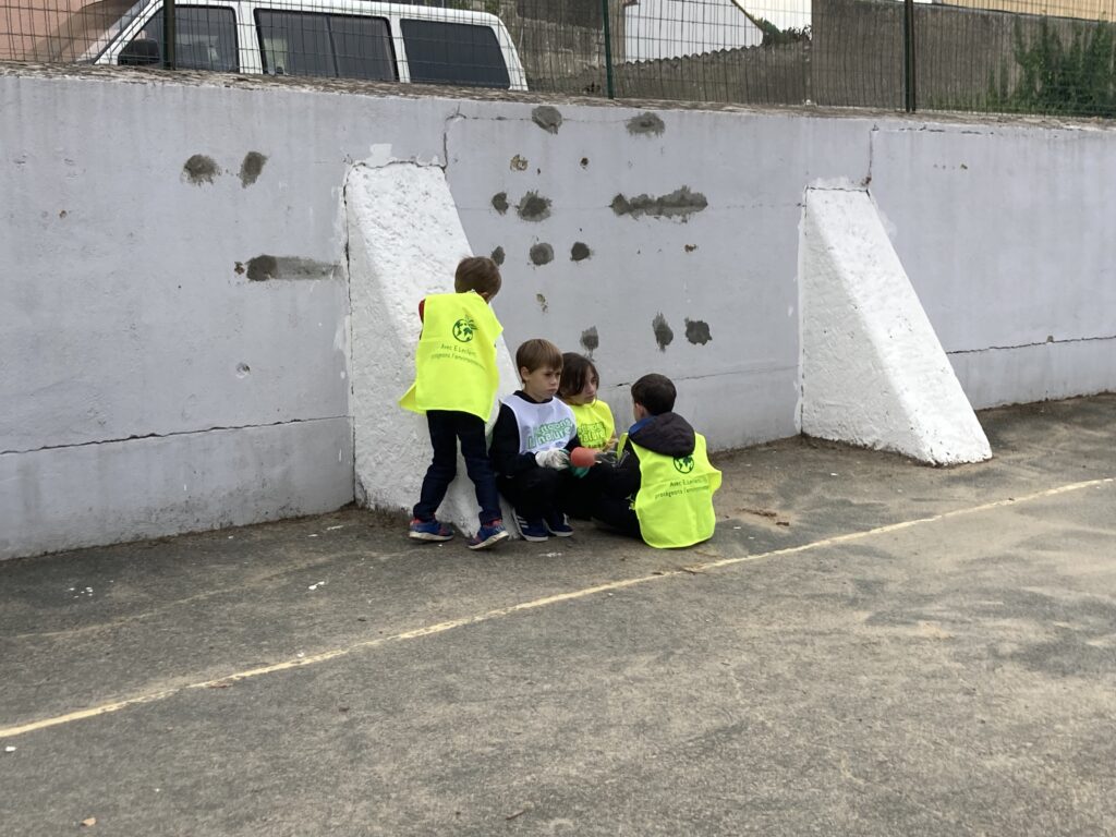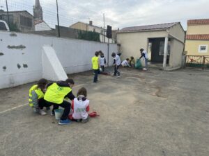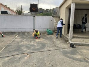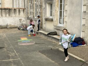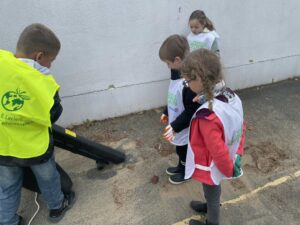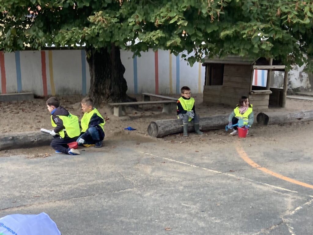 Mais avant cela, après un petit déjeuner offert par l’Apel et l’Ogec, nous commençons par nettoyer la cour de l’école (rassembler les quelques feuilles mortes, passer un coup de balai dans le hall et le préau, ramasser les gros cailloux, arracher les herbes tenaces).